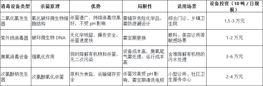 針對不同類型的小型醫療機構,需匹配差異化的處理技術路線,主流工藝及適用場景如下: