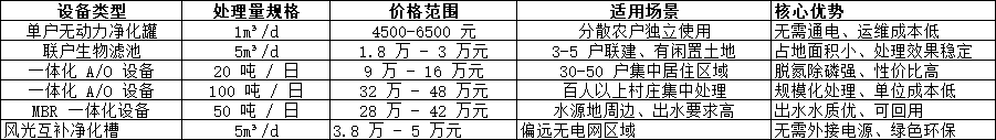 三、2025 年農(nóng)村污水處理設(shè)備價(jià)格參考表